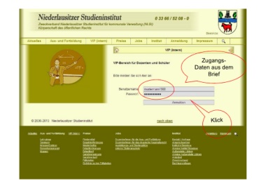 Zugangs- Daten aus dem Brief